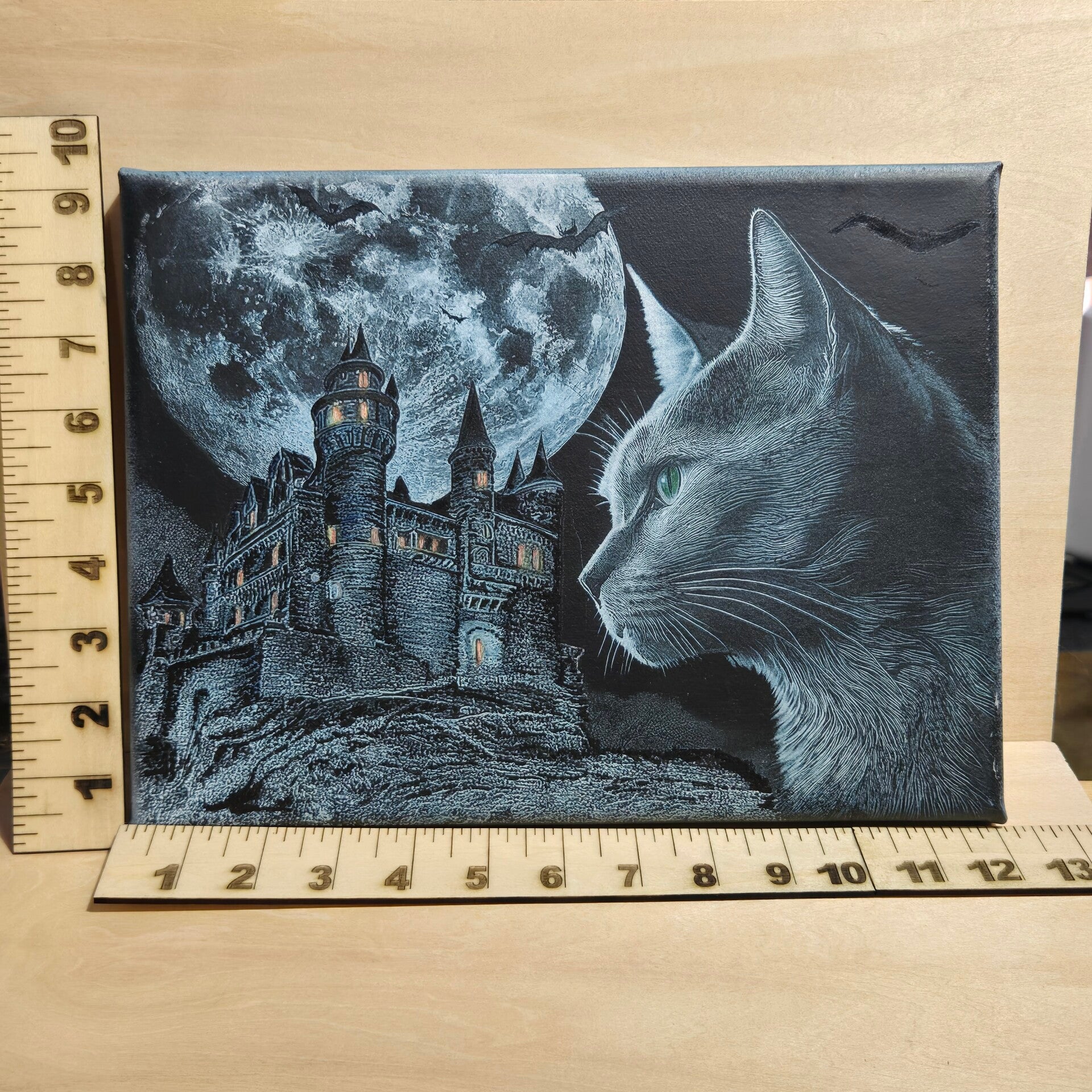 Poe's Cat and Castle Acrylic on stretched canvas. 12"x9"