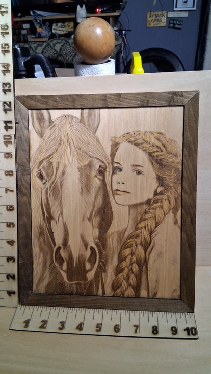 Pyrograph of a Horse called "My Horse Keeps Me Stable" 5.5 x 10 x 3/4 inches.