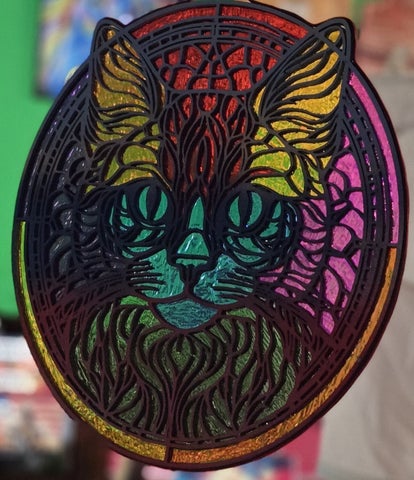 Pyro and Paint of a cat called "A cat's purr is the sweetest melody" 11 inch diameter.
